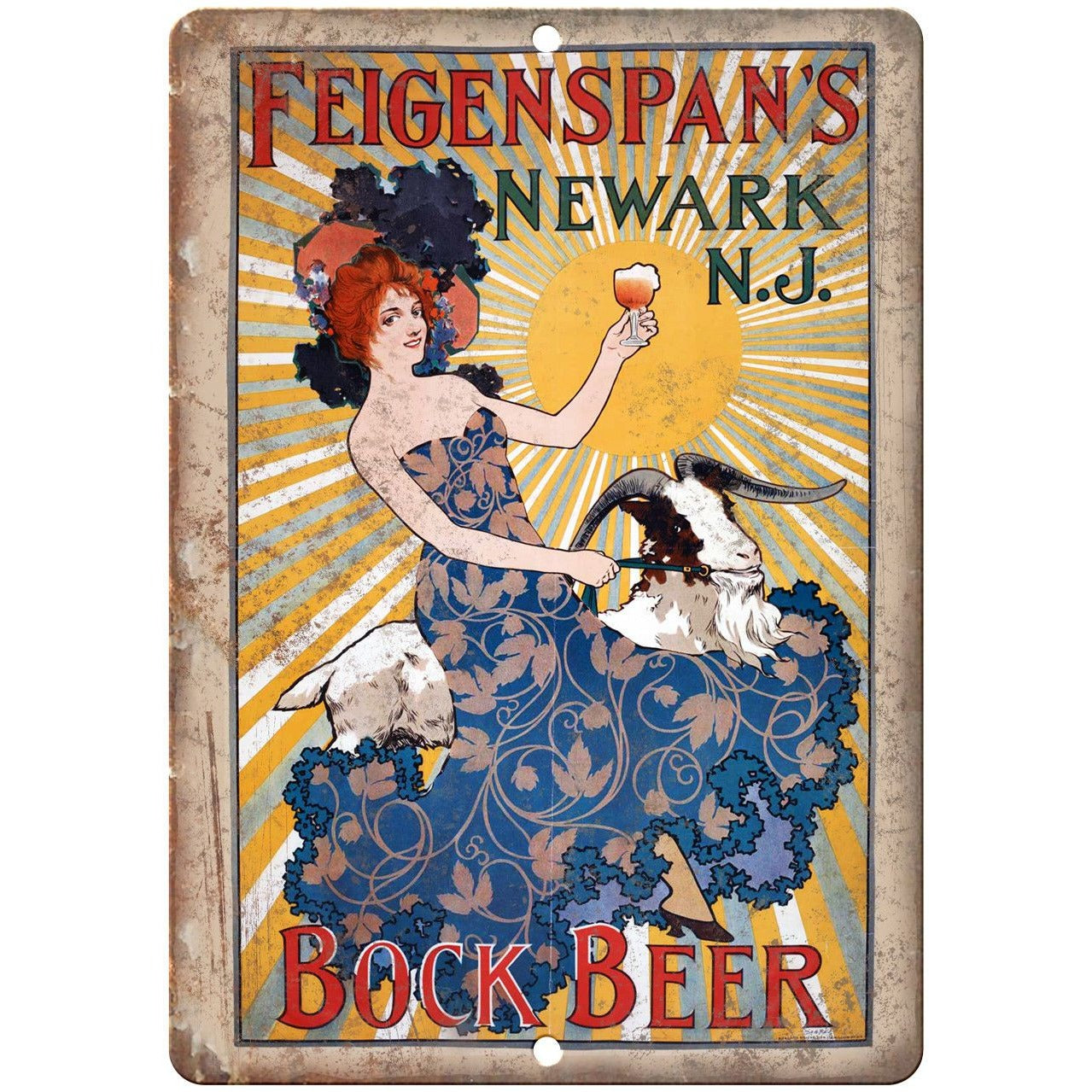 Feigenspan's Newark NJ Bock Beer Ad 9" x 12" Reproduction Metal Sign E223