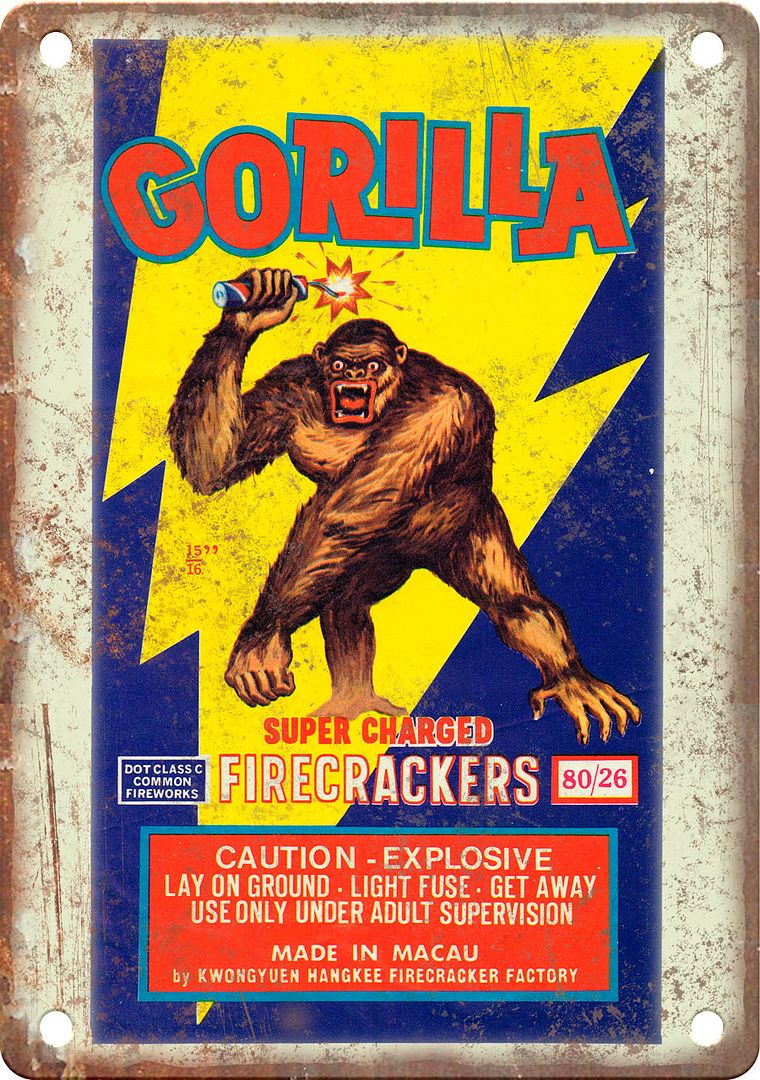 Gorilla Fiewcracker Wrapper Art Metal Sign