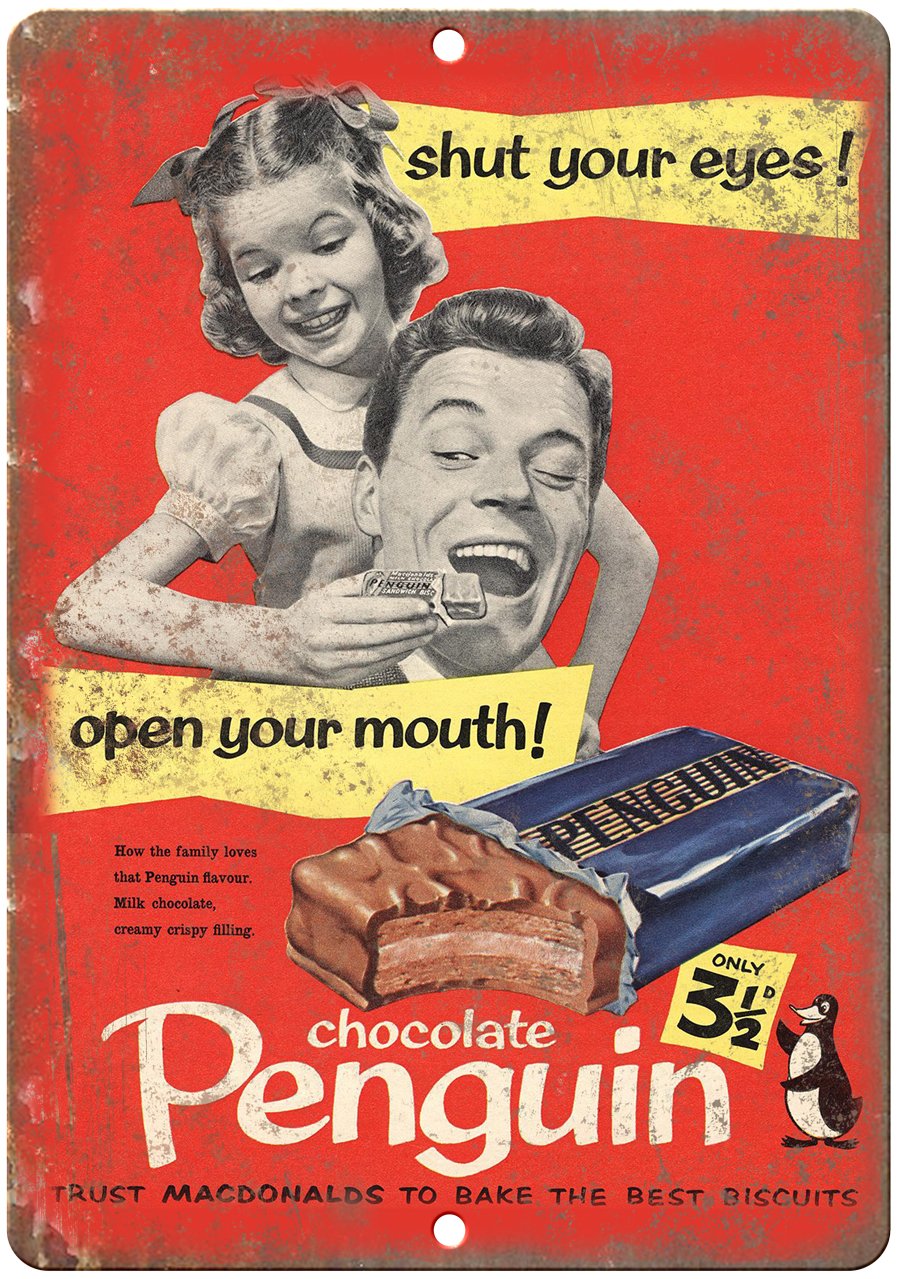Chocolate Penguin Metal Sign