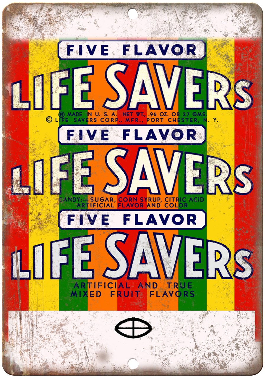 Life Savers Five Flavor Wrapper Metal Sign