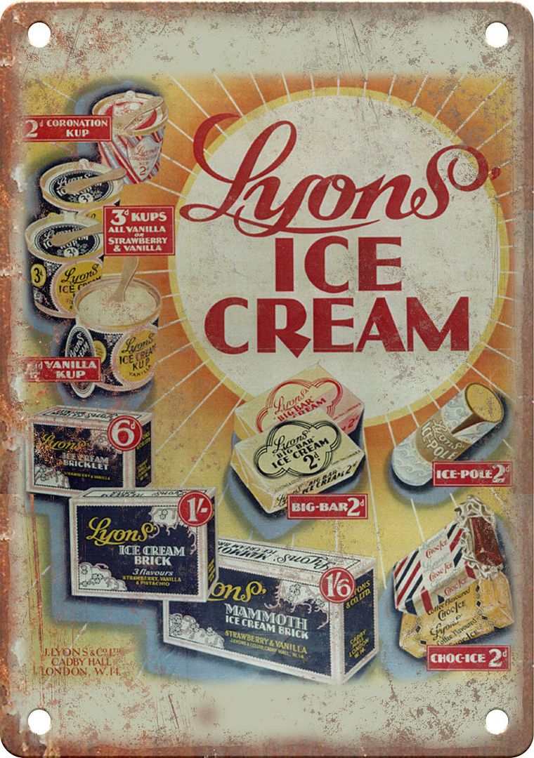 Lyons Ice Cream Vintage Ad Metal Sign