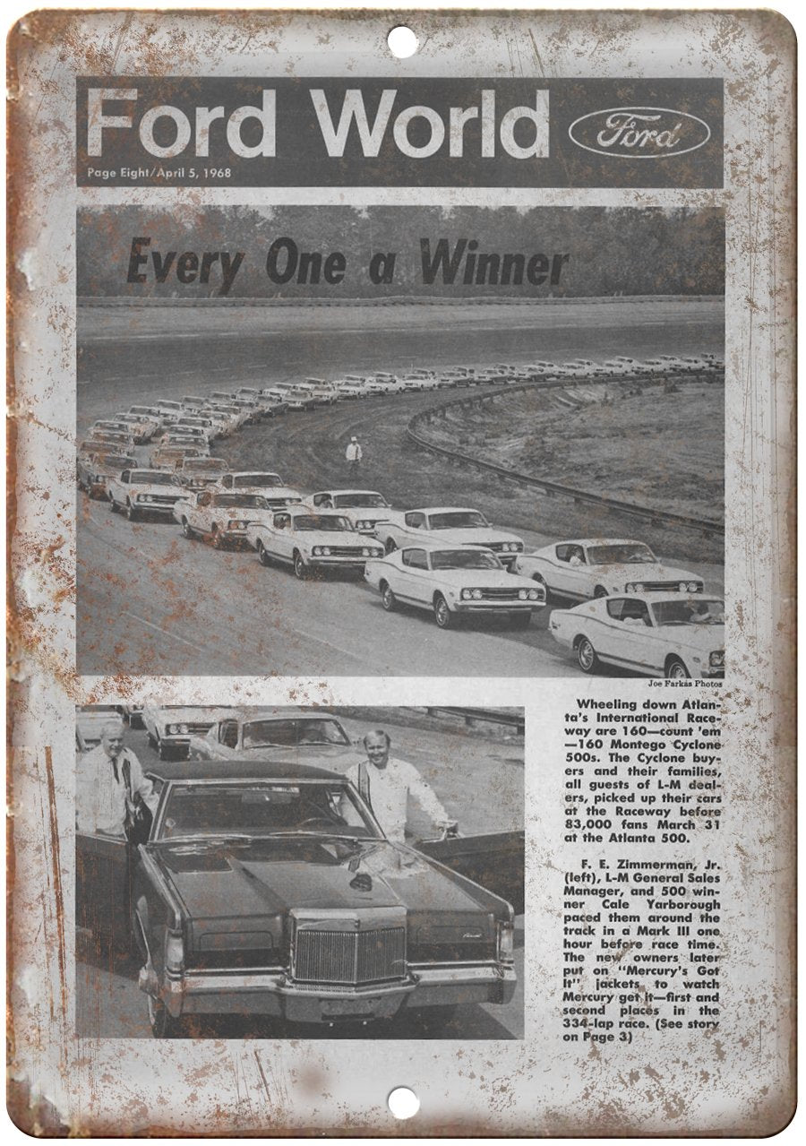 1968 Ford World Vintage Racecar Ad Metal Sign