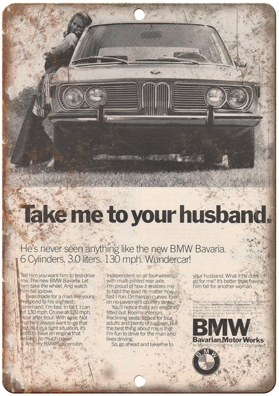 1972 BMW Bavarian Motor Works Vintage Ad Metal Sign
