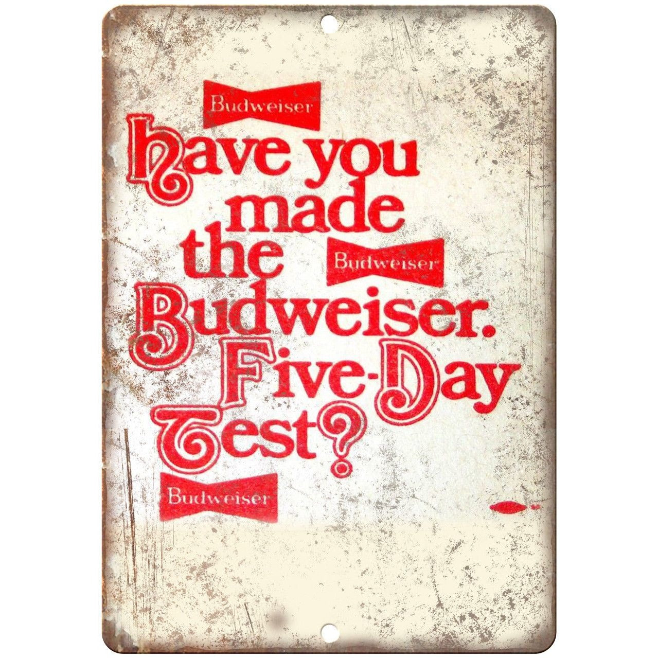 Budweiser Five Day Test Vintage Ad 9" x 12" Reproduction Metal Sign E168