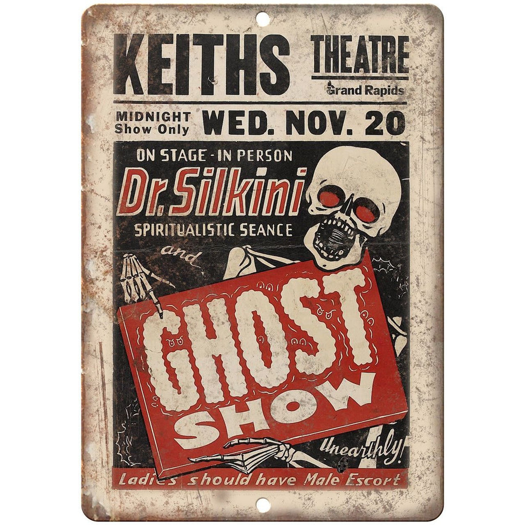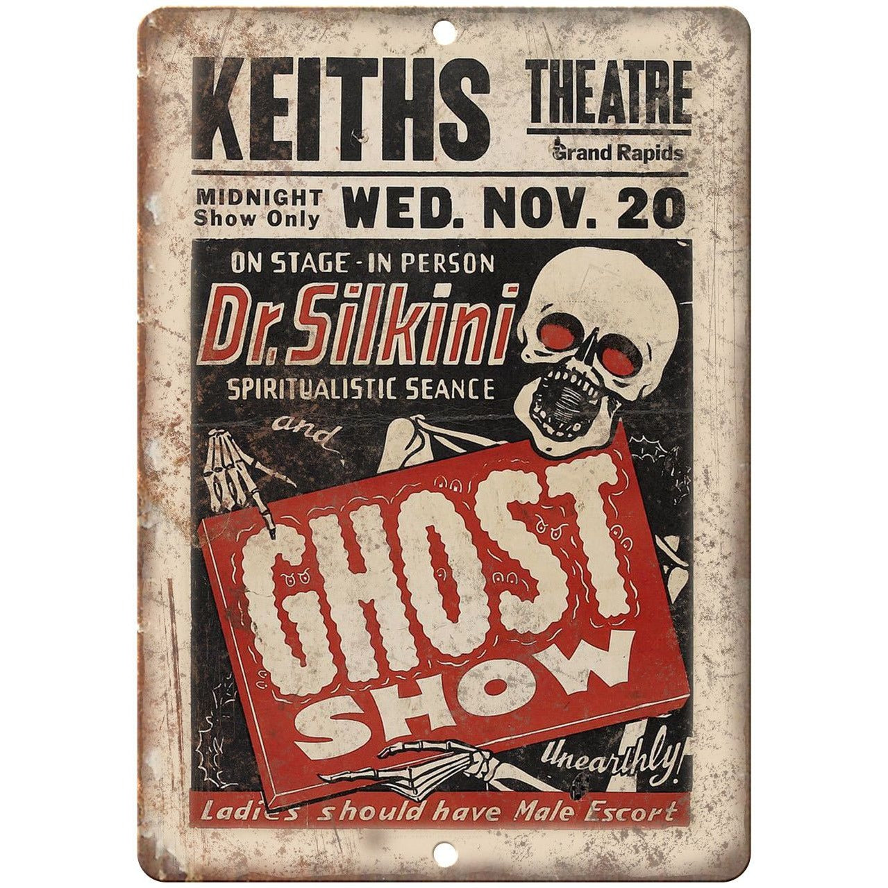 Dr. Silkini Ghost Show Ad 9" x 12" Reproduction Metal Sign ZH156