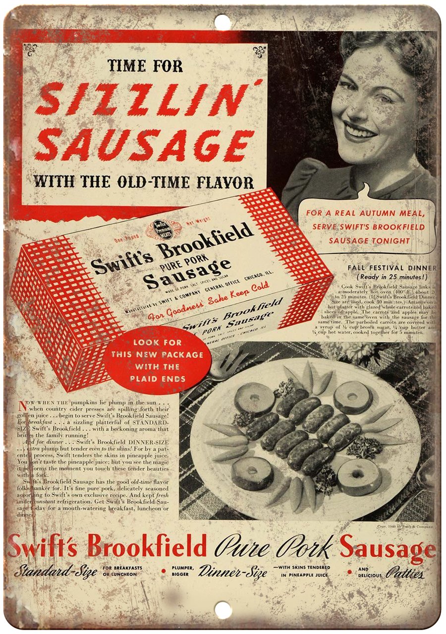 Sizzlin Pork Sausage Brookfield Metal Sign