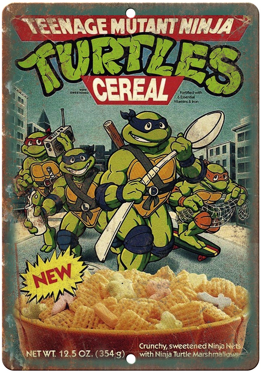 Teenage Mutant Ninja Turtles Cereal Box Art Metal Sign